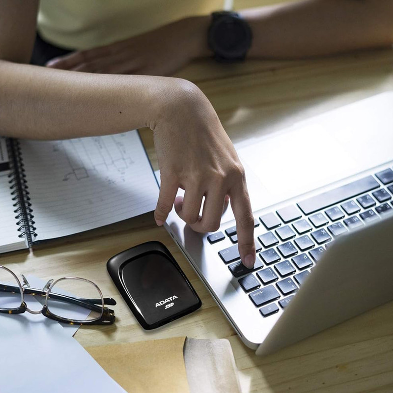 با وزن 35 گرم و ضحامت 10 میلیمتر حافظه SSD اکسترنال مدل SC680 ای دیتا دارای طراحی فوق العاده ای است. این محصول ضد ضربه بوده، بی سر و صدا عمل می کند و نسبت به دیگر درایو های اس اس دی اکسترنال انرژی کمتری مصرف می کند. به لطف بهره مندی از رابط کاربری USB Type C با تکنولوژی USB 3.2 نسل 2دارای سرعت فوق العاده خواندن ونوشتن 530 و 460 مگابایت در ثانیه است یعنی 6.6 برابر سریع تر از هاردهای اکسترنال است.