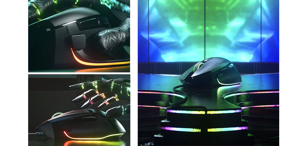 از شکوه Razer Basilisk V3 لذت چرا که 11 ناحیه از این موس با Razer™ Chroma RGB نورپردازی شده که هر ناحیه رو میتونی با بیش از 16.8 میلیون رنگ و جلوه‌های نوری بی‌شماری شخصی سازی کن یاین درحالی ­است که این­ موس به­ بیش ­از 150 بازی با پشتیبانی Chroma واکنش نشان می­دهد.